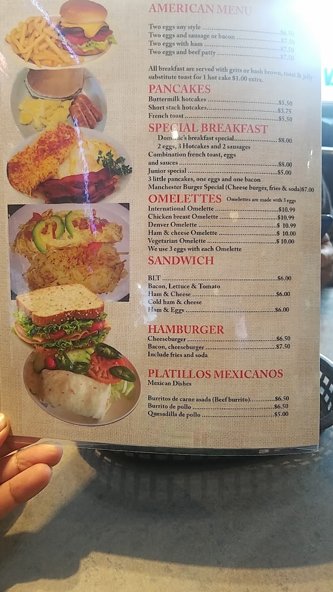 Pancakes: Typically includes a stack of fluffy pancakes, often served with syrup and butter.