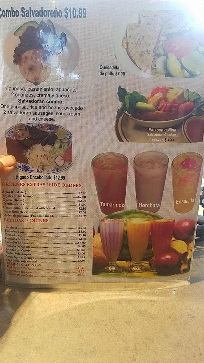 Thick tortilla filled with cheese, beans, pork, chicken, loroco, jalapeño, zucchini, and spinach.